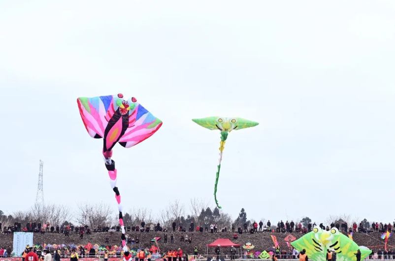 在成都北部,蛟龍風(fēng)箏劃破長(zhǎng)空、哪吒躍上天際、油菜花燦燦盛放、后備箱咖啡